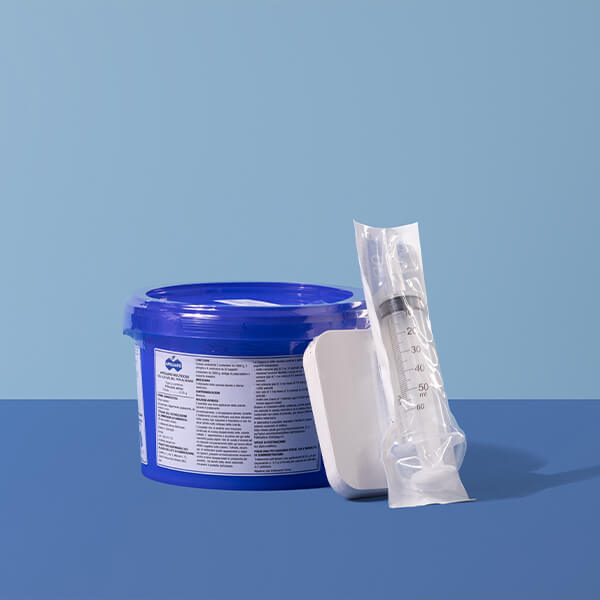 Scatola contenente 2 secchielli da 3000g, 2 siringhe e 4 confezioni da 30 supporti dosatori